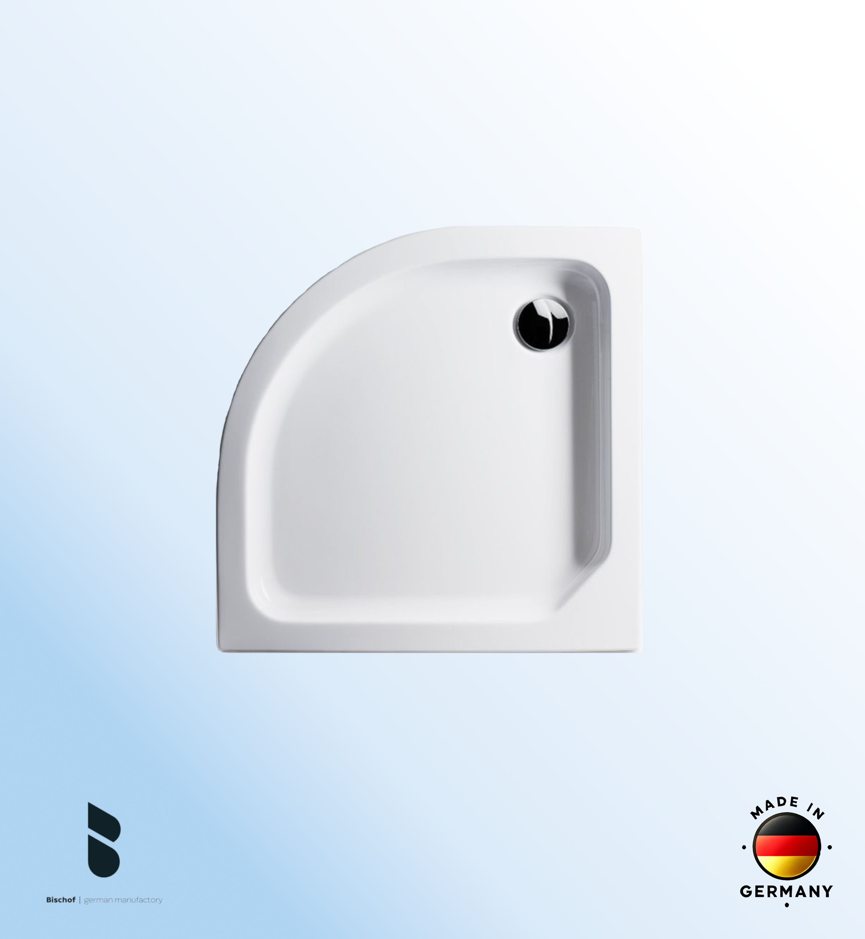 KOMPLETT-PAKET: Duschwanne 80 x 80 cm Viertelkreis Radius 50, Farbe: ÄGÄIS flach 6,5 cm Acryl + Styroporträger/Wannenträger + Ablaufgarnitur chrom DN 90